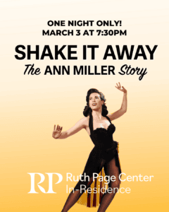 Shake It Away: The Ann Miller Story returns to Chicago after a critically acclaimed world premiere tour that included the Hollywood Fringe in Los Angeles (Hudson Theatres, June 10 – 15, 2025), Off-Broadway’s “East to Edinburgh” in New York (59E59 Theaters, July 15 – 19, 2025) and the Edinburgh Festival Fringe (theSpace at Surgeons’ Hall, August 1 – 9, 2025).