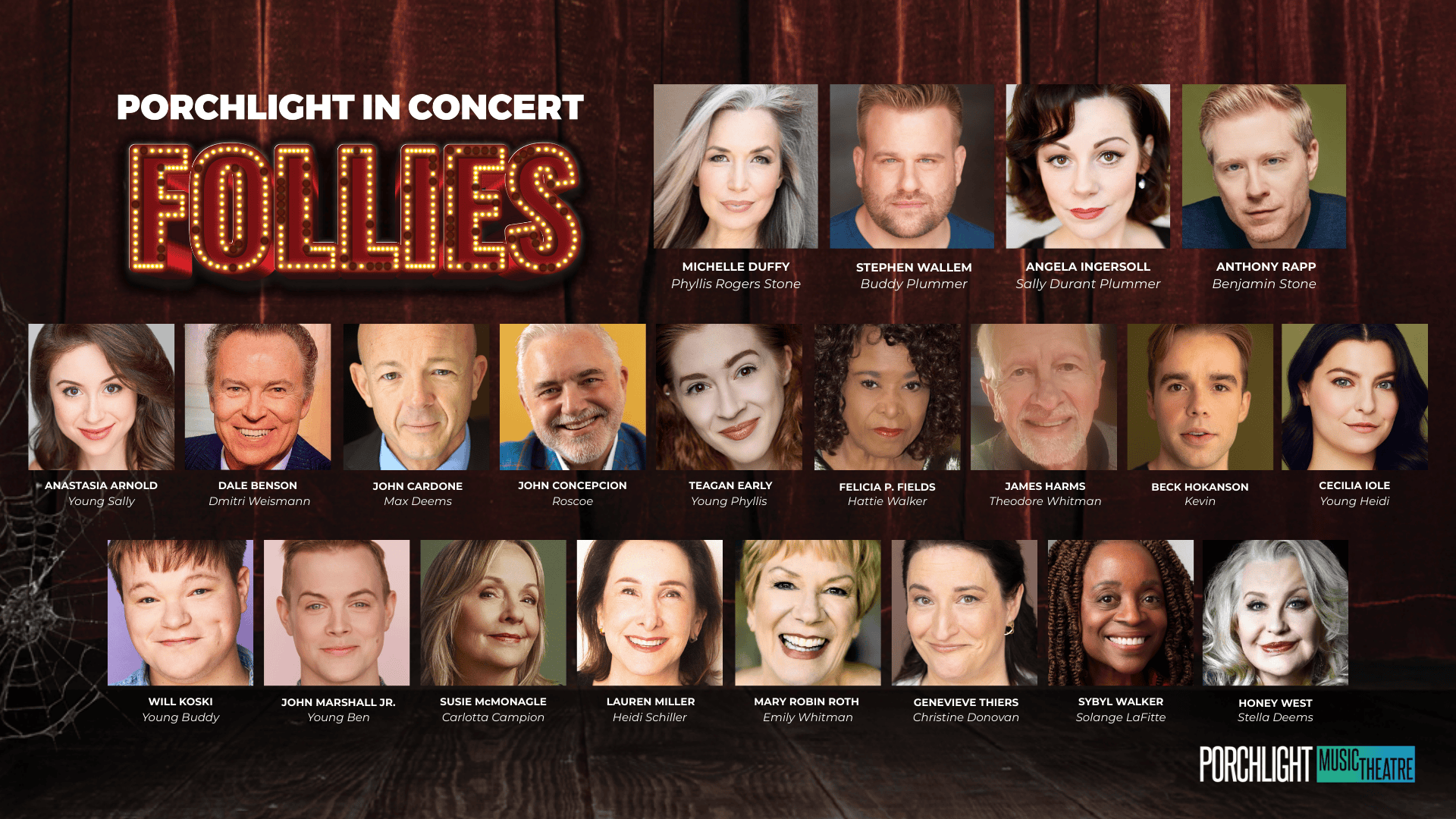 Porchlight In Concert debuted in 2024 with sold out performances of Sunday in the Park with George and this season returns to the Studebaker for a limited engagement of another Stephen Sondheim classic, Follies. Winner of seven Tony Awards, including Best Score, Follies shares the reunion of the legendary “Weismann Follies” company on the eve of a crumbling theater’s demolition, to reminisce about their past with a rich score that is considered to be one of Sondheim’s finest. Follies includes the standards “Broadway Baby,” “I’m Still Here,” “Losing My Mind” and more.